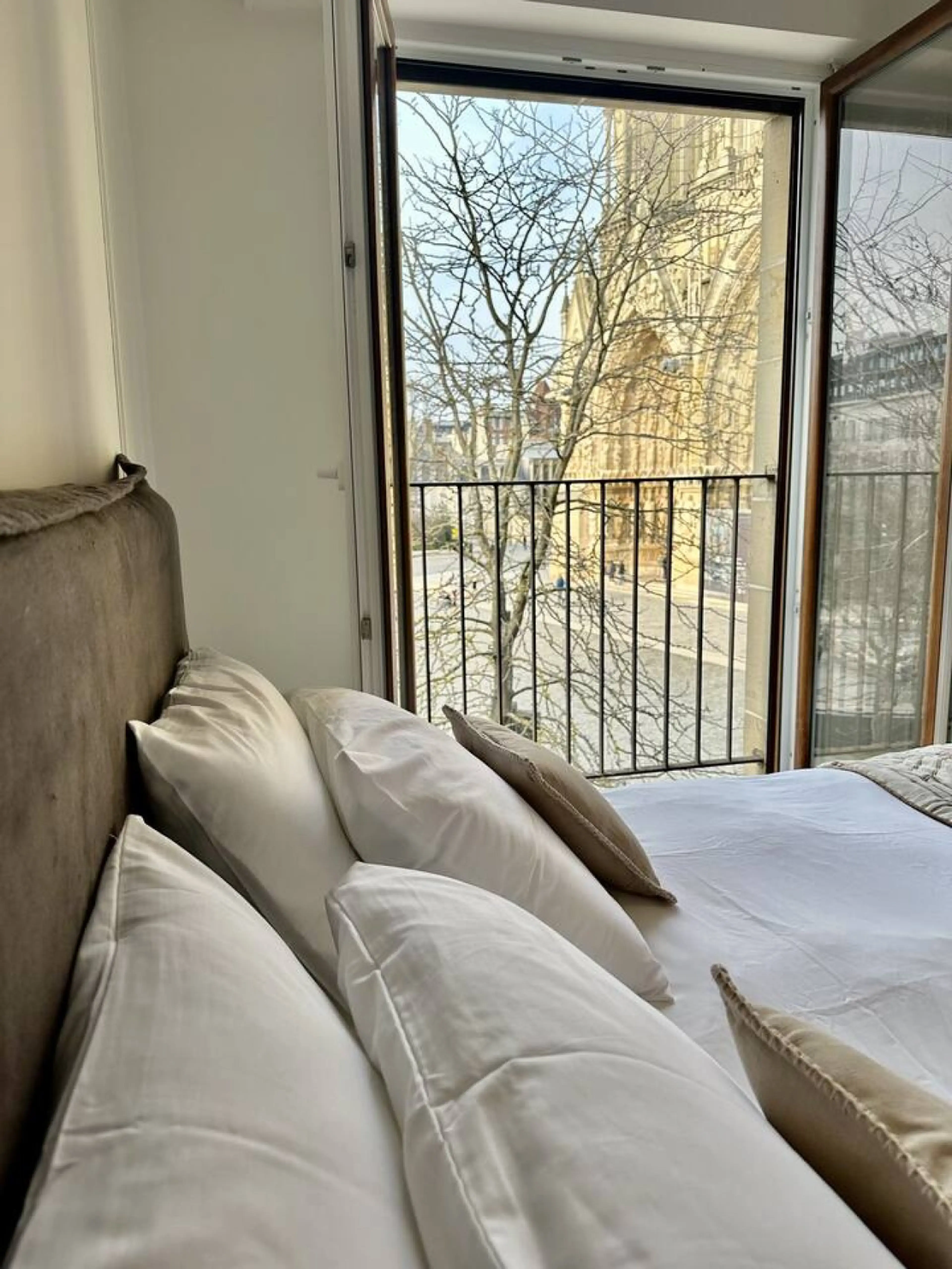 Vue imprenable et extraordinaire sur la cathédrale de Reims. Vous vivrez votre séjour au cœur de la ville, dans une zone piétonne, au pied de notre grande dame. Notre appartement vous offre la possibilité de découvrir notre ville à pied grâce à son parking privé. Il est conçu pour accueillir 8 pe...